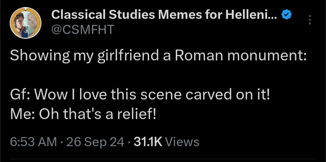 Double meaning of relief. Relief is raised part of the otherwise flat scene in the sculpture/ object.