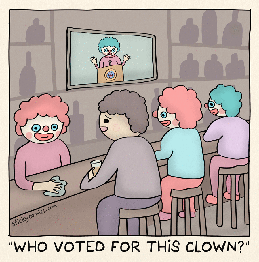 Clown is looking at cars, salesman comes up and says, “Can I help you?” The clown says, “Yes, do you have anything much smaller that can paradoxically hold many more people?”