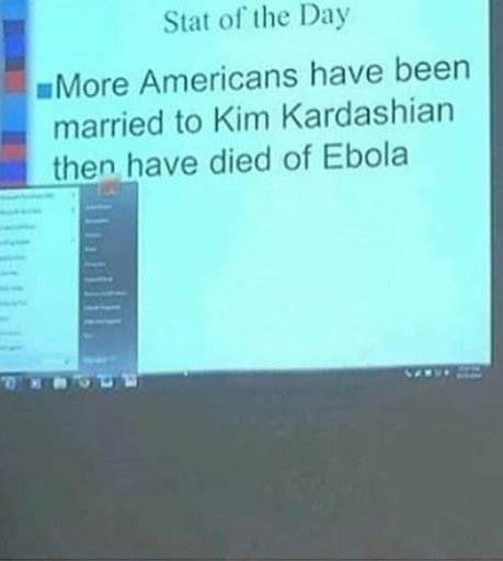 I like to believe that it’s a like a news headline “More Americans have died of ebola after marrying Kim Kardashian”