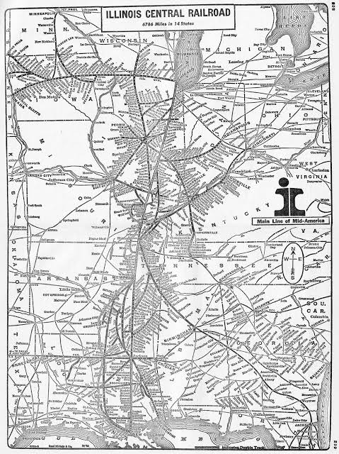 Here’s a map of just the Illinois Central Railroad:https://encrypted-tbn0.gstatic.com/images?q=tbn:ANd9GcSm-rwgQ1PSRo4GIplmxRZscx_nF-betb5SMRbEo7juj5nxUP0lpUp-NXs&s=10