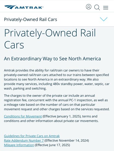 I worked with someone that had some Great Aunt or whatever that did this. The lady just didn’t like planes, so she would travel like this. Basically, you get all the amenities of an RV, water tank fill up, power hook up, plus you can walk up to the admittedly gross food car. She said it looked like an RV apartment combo, and that the Aunt was old money, so the Mr. Monopoly vibe is accurate.