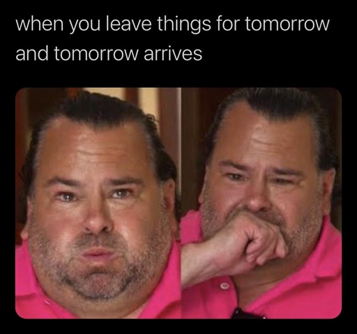 Usually for me its … I left it for tomorrow … but now its next week!!!