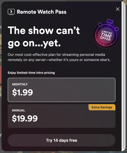 I wanted to move to Jellyfin, but there isn’t an app for it on the LG WebOS library like there is for Plex, so I wouldn’t be able to watch stuff on my TV, which sadly makes it useless for me :-(