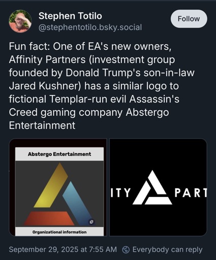 it would actually be funny if they bought Ubisoft, because they’re the ones that make the Assassin’s Creed games, not EA.