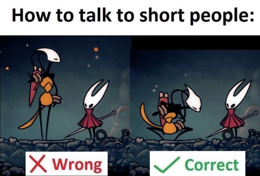 Notice the illustration. They maintain proper posture and squat to reach the other’s eye level. No need to hurt your back.