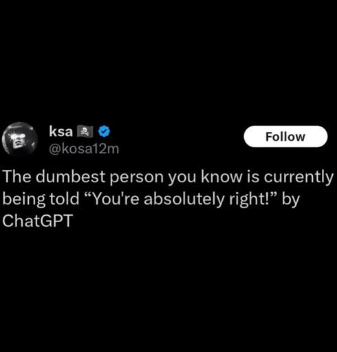 The dumbest person you know is currently being told “You’re absolutely right!” by ChatGPT.
