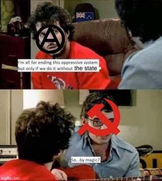 Yes, and I agree with that. I’m a Marxist-Leninist, and do agree with abolition of the state, but that requires erasing the basis of class society.