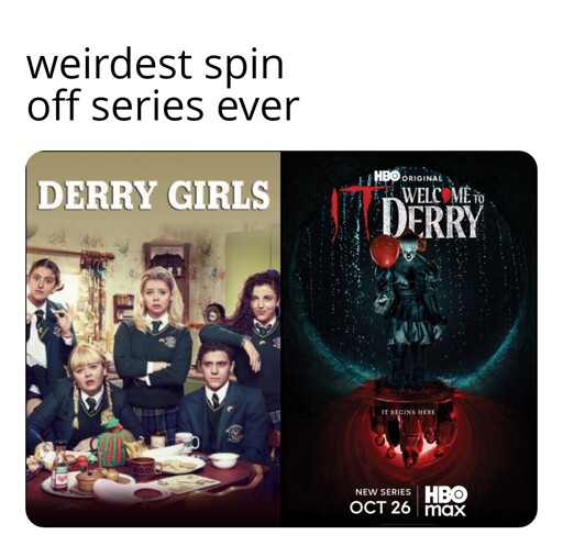 Was pirating the first episode of “Derry” when she looks at my screen. (It’s a 40" TV, can’t avoid snooping.)