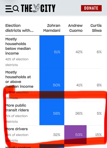 And note that Sliwa voters composed 15% of drivers - about double that of residents above median income.