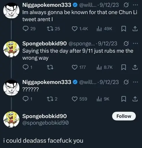 arrow-up141arrow-down1imageaverage twitter conversationNSFWsopuli.xyzSSUPII@sopuli.xyz to Lemmy Shitpost@lemmy.world · edit-212 days agomessage-square4linkfedilink