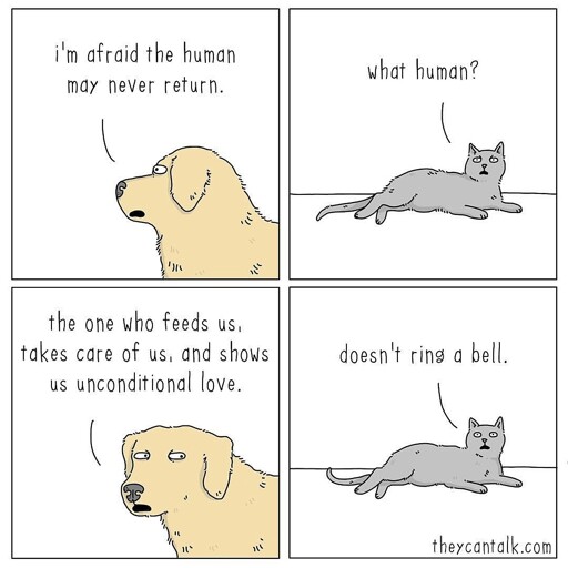 minus-squareitkovian@lemmy.worldlinkfedilinkarrow-up1·4 days agoPlease be nice to cat. She has memory of a goldfish.