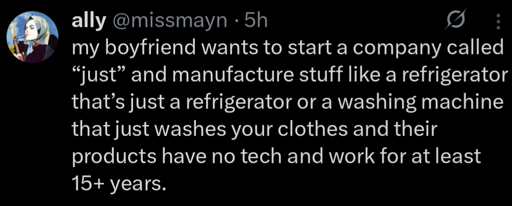 Imagine how much better the dishwasher would be if the people who’d spent the time building the world’s most pointless app, instead worked on literally any other aspect of the dishwasher.