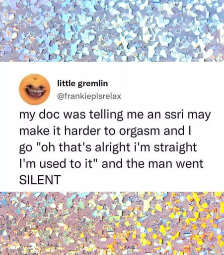 To me the even more obvious response to the quoted bit is ‘you know it affects your ability to orgasm from masturbation too, right?’