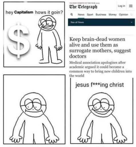 No it’s that everything is expensive and life is a lot of work but capitalism can’t make people fall in love so instead it will try to give birth through corpses.