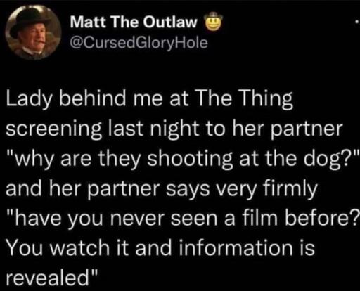 Everybody talking about Tenet and I’m just here wondering when the hell there was a theatrical screening of The Thing that I missed. 🫤