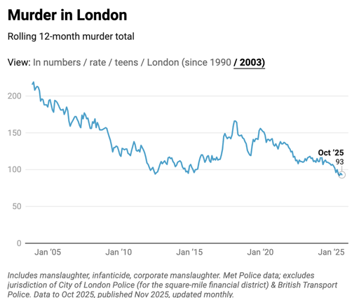 arrow-up1173arrow-down1image93 murders in London (pop: ~9million) in 12 months. London's murder rate is now at the lowest level for decadesplus-squarelemmy.worlddwouu@lemmy.world to Mildly Interesting@lemmy.world · edit-21 day agomessage-square6linkfedilink